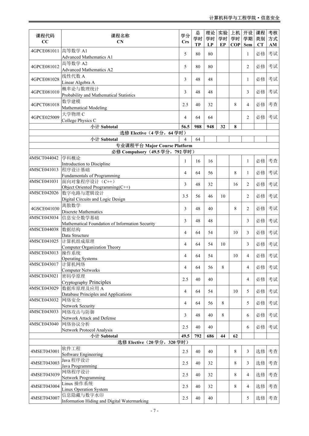 信息安全专业(080904K)培养方案(2019版)