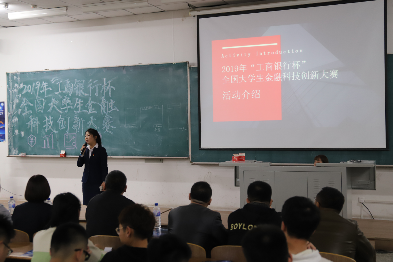 举行了“工商银行杯”全国大学生金融科技创新大赛宣讲会,此次大赛以“赢创小宇宙、工行伴我行”为主题,以“小宇宙、大未来”为品牌广告语,旨在为大学生在金融领域方向提供一个实践参与平台,让大学生将知识与实践结合,全面发展;同时以此次大赛为载体,选拔出高素质的综合性人才。