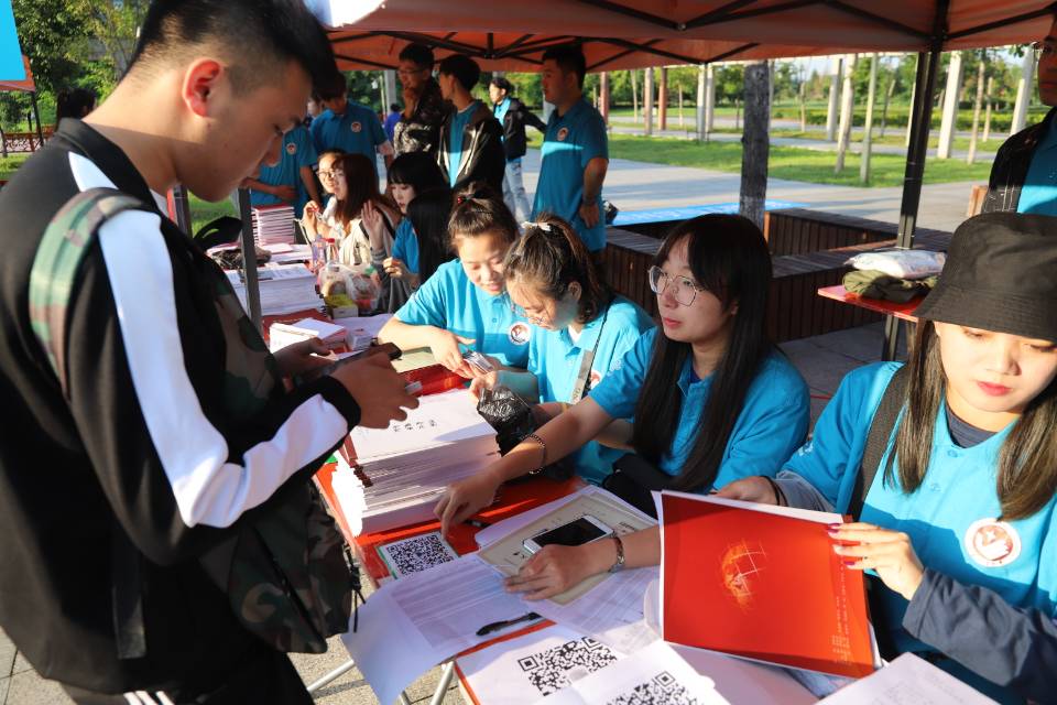 领导与志愿者一同为新生家长答疑解惑,亲切交谈。各个部门在此次迎新工作中分工明确,组织有序,密切配合,报到过程高效快捷,井然有序,受到了一致好评及高度认可。
