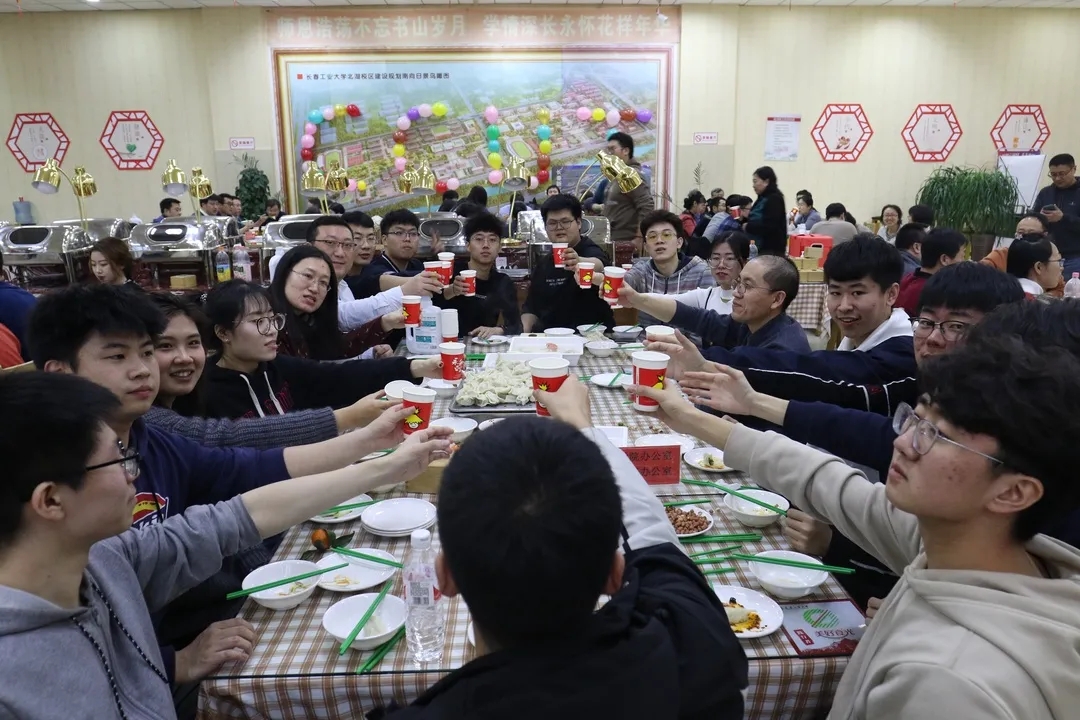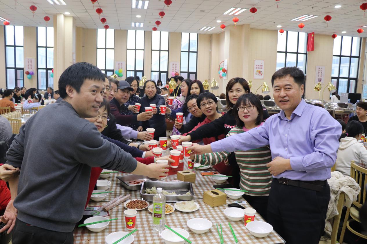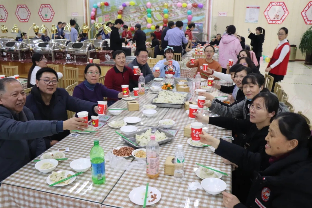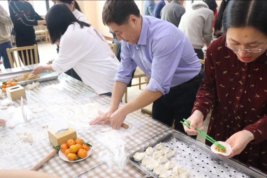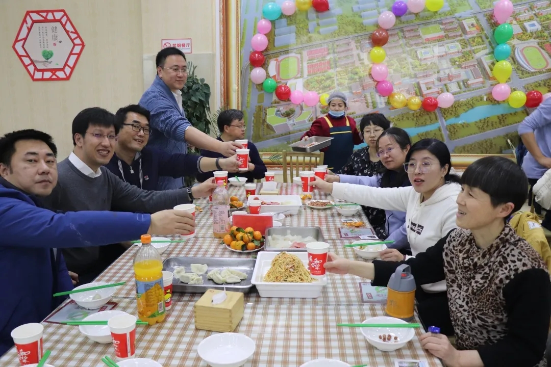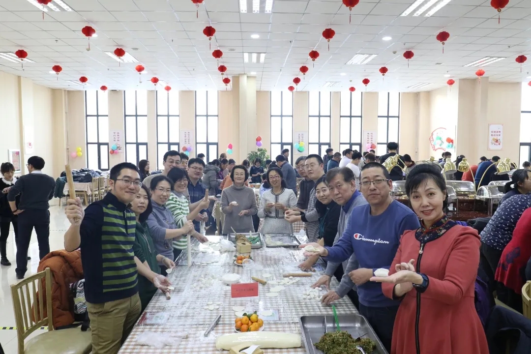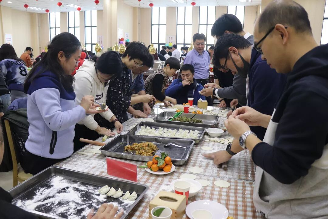 随后,全体教师出发去北湖西区教工食堂开展“包饺子活动”,六个党支部的老师们分工明确,热情高涨,整个过程中笑声隆隆,暖意洋洋。