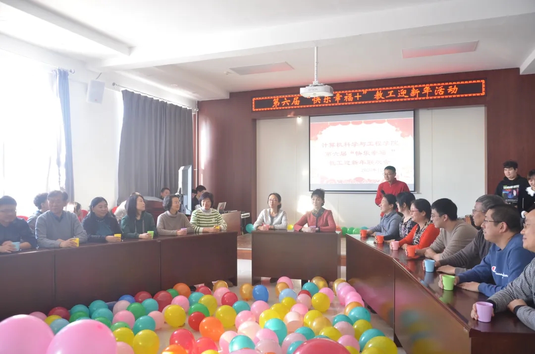 于12月25日在北湖西区计算机楼323教室和教工食堂开展了第六届“快乐幸福+”教工迎新年活动。全院教职员工及部分退休老教师参加了本次活动。