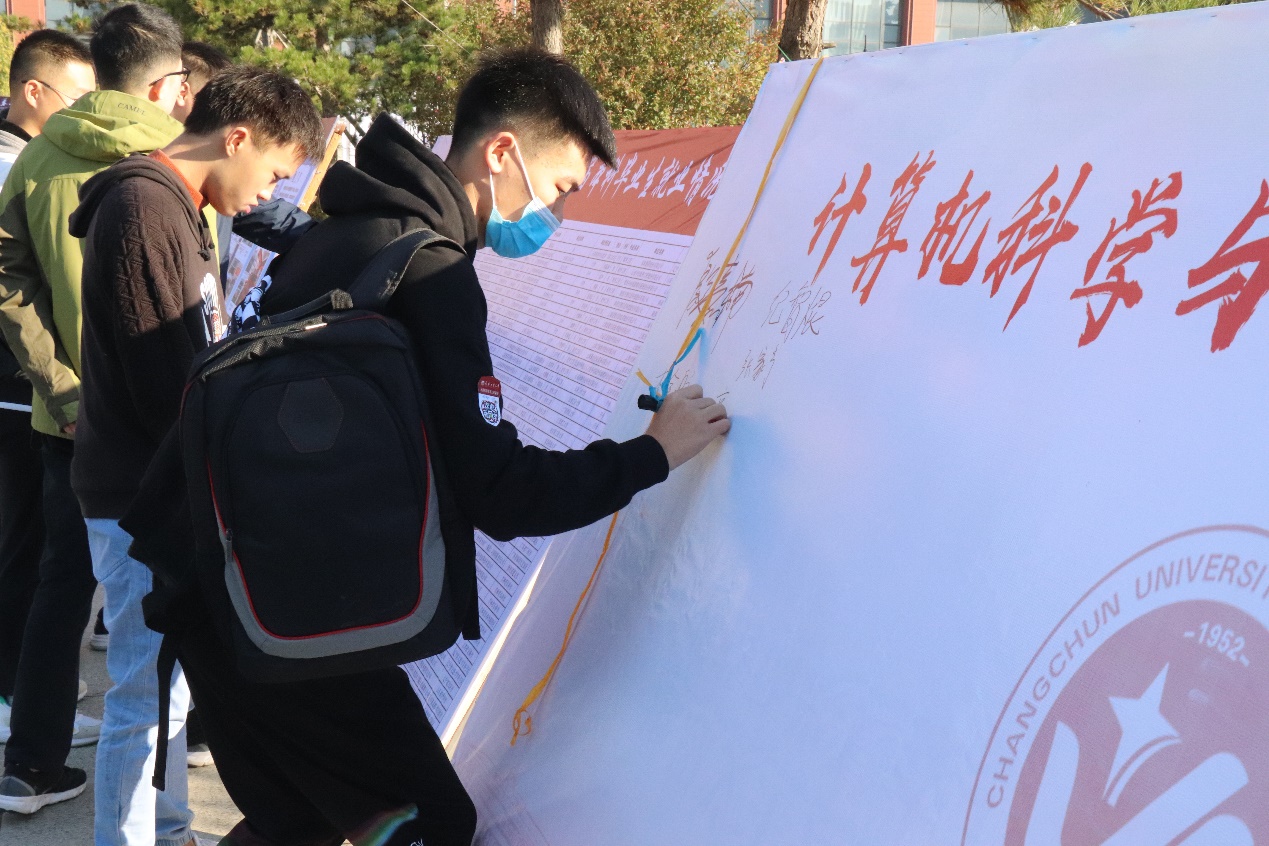 20级新生在展板上签名留念