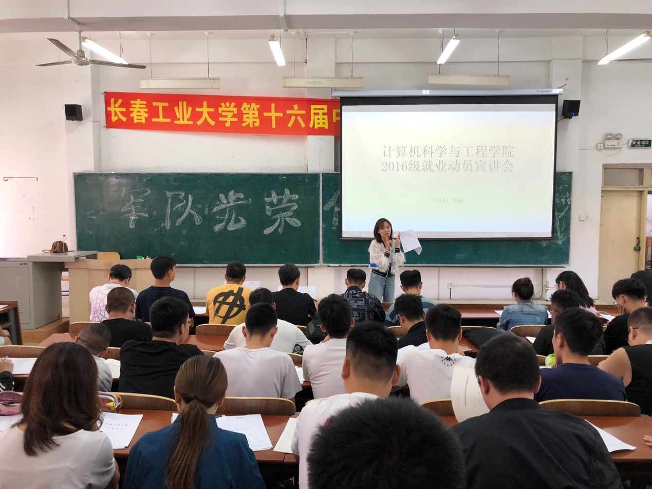 在南湖校区综合楼一楼召开2016级毕业季就业动员宣讲会,宣讲会由毕业班辅导员庄园老师主讲,2016级全体同学参加。