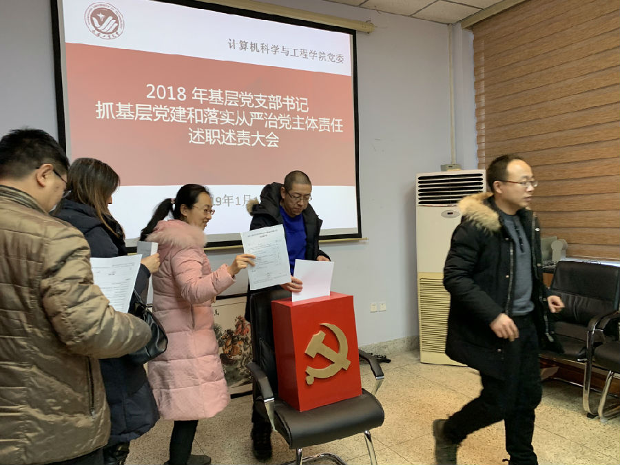 最后,全体与会人员对参加述职的党支部书记2018年度党建工作履职情况进行了民主测评。