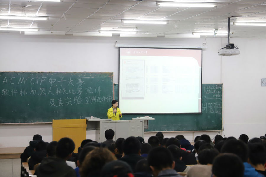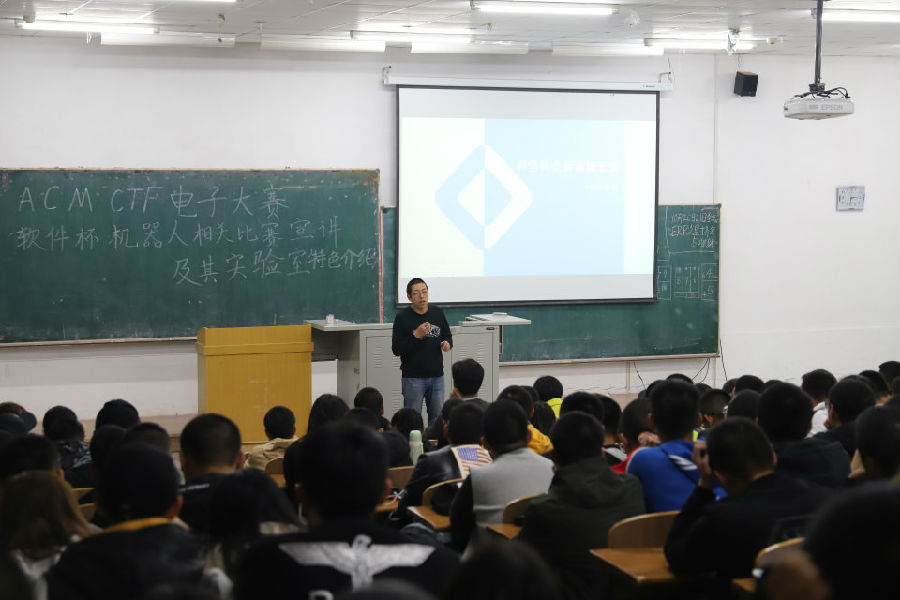 会议分两个教室同时进行,各实验室老师们分别对所属实验室将要学习的专业知识及涉及的技术进行讲解。包括实验室涉及的专业技术、团队精神、培养途径以及建设宗旨等。对于实验室人才的未来发展,老师们表示:坦诚、好学、坚持,是作为一个优秀工程师的基本品质,同时强调“以赛带练,以练促学”的培养理念,重在系统化、层次化培养学生软件设计、开发能力,力争将学生培养成为行业精英。