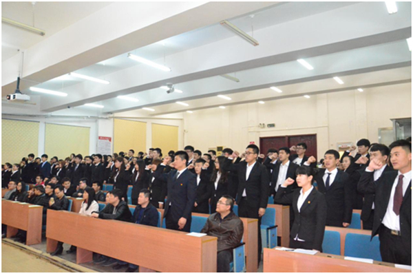团委工作负责人王珺楠老师宣读新一届团委、学生会、社团联合会主要学生干部名单。上一届学生会主席团代表丁明浩对过去一年的工作进行了总结汇报,并表达了对新一任学生会干部的希望和鼓励。新一届学生会主席杨航做工作展望,代表新一届学生会展示对工作决心和信心。而后,由社联主席葛泽带领学生干部进行宣誓,在宣誓中全体学生干部充分表达了自己对未来工作的热情。