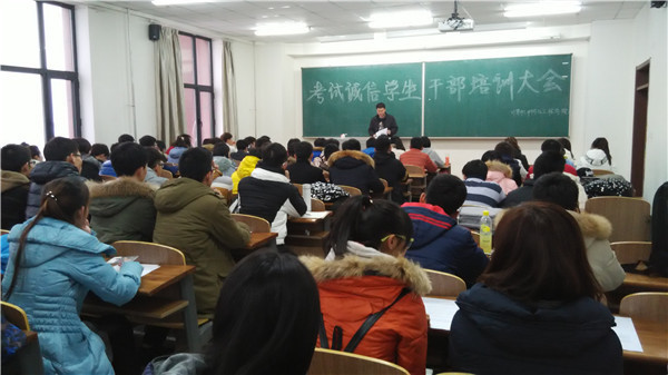 在12月14日下午召开了“诚信考试”学生干部培训大会,辅导员陈磊老师担任了此次大会的主讲,参加大会的还有助教王艺程老师以及全体学生干部。