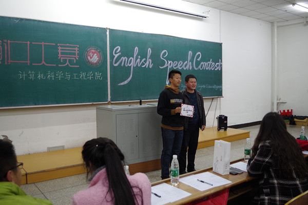 全体同学积极参与,为自己班级的选派选手加油助威。本次大赛全程秉承英文主持,选手们幽默诙谐、沉稳持重、激情昂扬表现感染了每个人。最终来自150404班的李圣同学荣获本次比赛第一名。