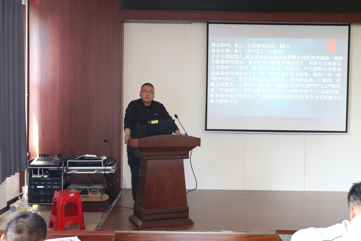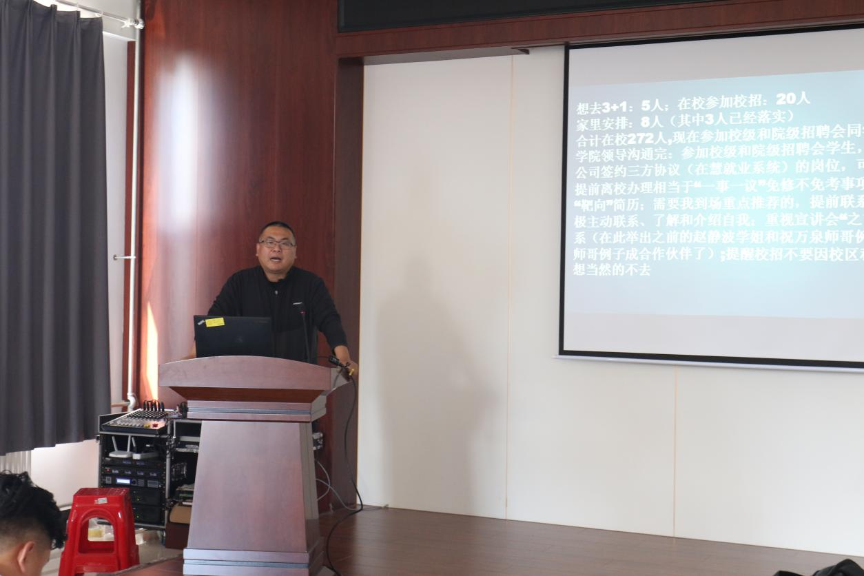 会议伊始,王珺楠老师就当今就业形势向同学们进行了详细的讲解,针对目前大学生就业形势也做出了具体的分析。其次,他提出“迈开腿,张开嘴”的行动思维,提醒广大同学不要受专业限制、校区限制,一定积极参加秋招。而后,针对考研以及考公务员的事项进行说明指导。向同学们介绍了成人视频