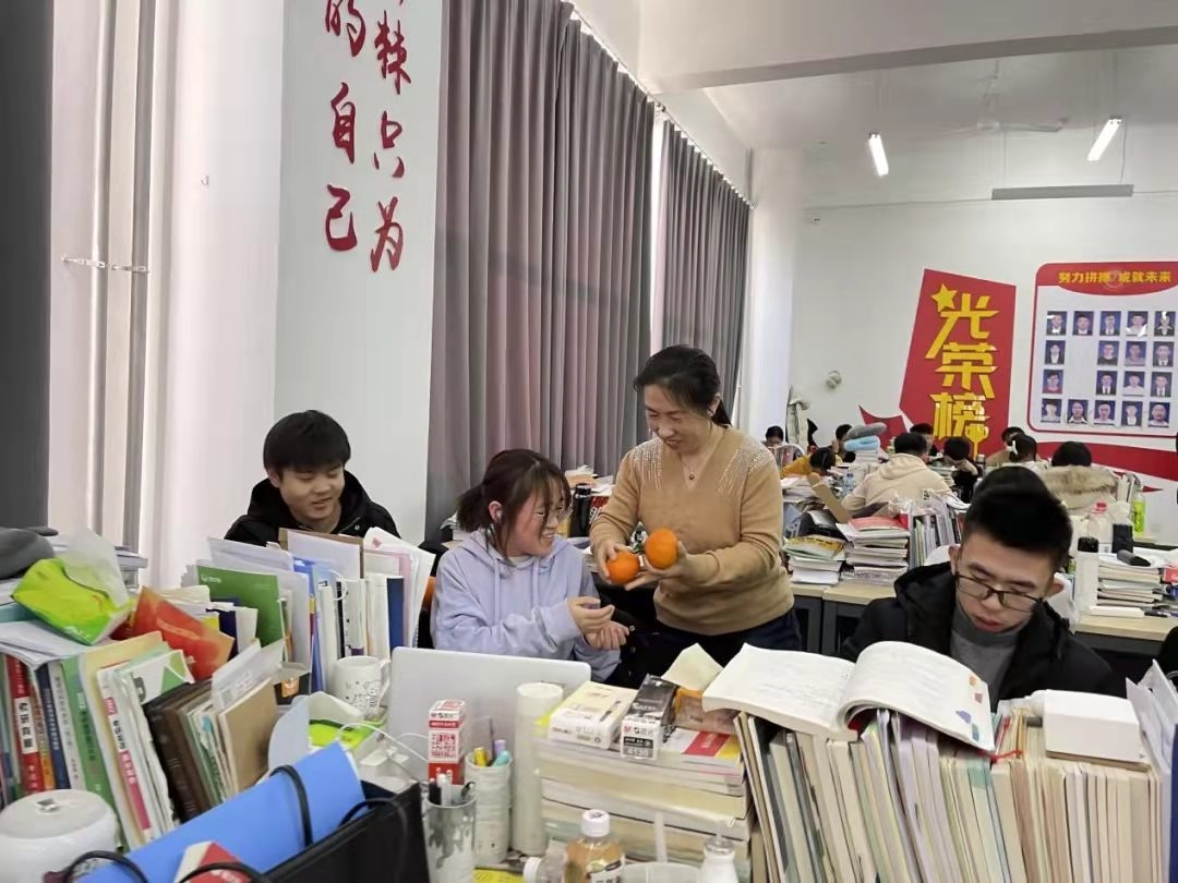 活动伊始,在场的领导、老师们先是给在场的同学们送上了橙子,寓意心想事“橙”,考研”橙“功。随后,周文明书记鼓励备考学子,希望这小小的礼物,可以带给同学们更多的鼓励与温暖。他表示,坚持到最后不容易,一路走来,同学们的努力与付出都会被记得,埋头耕耘之后即将迎来果实的美好,希望大家调整好节奏,持续发力的同时,注意饮食,做好防护。王红梅院长指出,成人视频