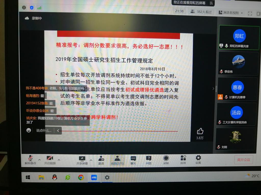 以线上会议形式召开考研、就业宣讲会。本次会议旨在为2019级学生进行考研指导和就业政策解读。本次会议由成人视频