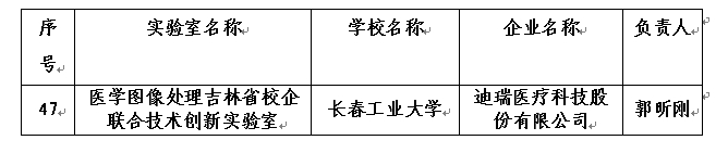吉林省教育厅校企联合技术创新实验室立项建设名单
