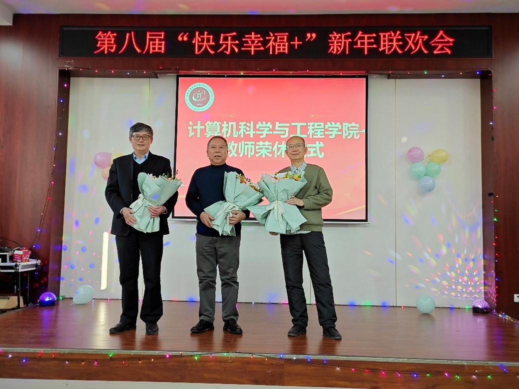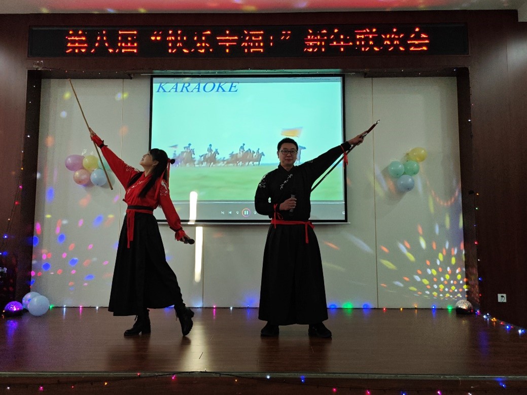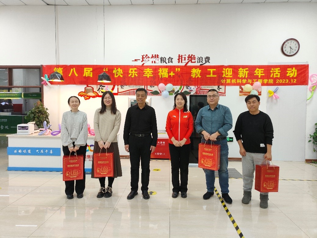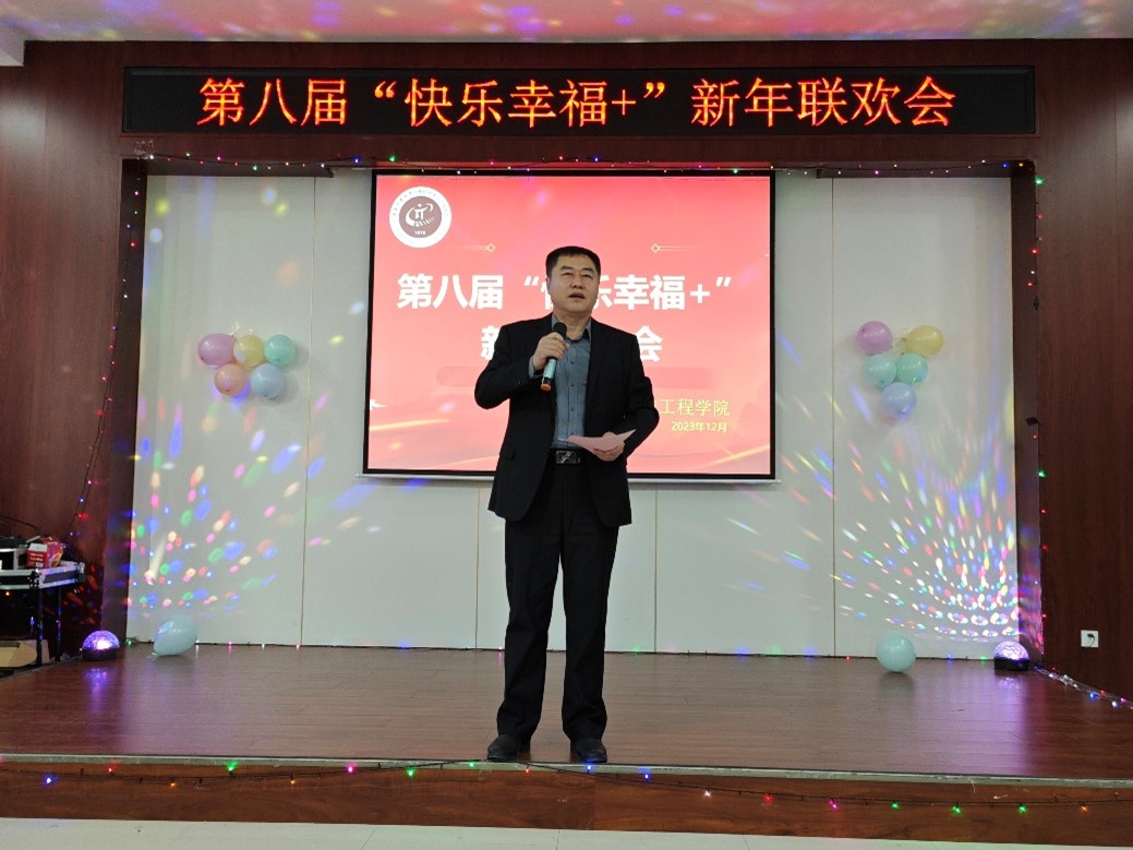 323会议室举办第八届“快乐幸福+”教工迎新年活动。本次活动由实验中心陈阳和21级辅导员周扬主持,学校相关部门领导、退休教师代表、校友和院师生共同参会。