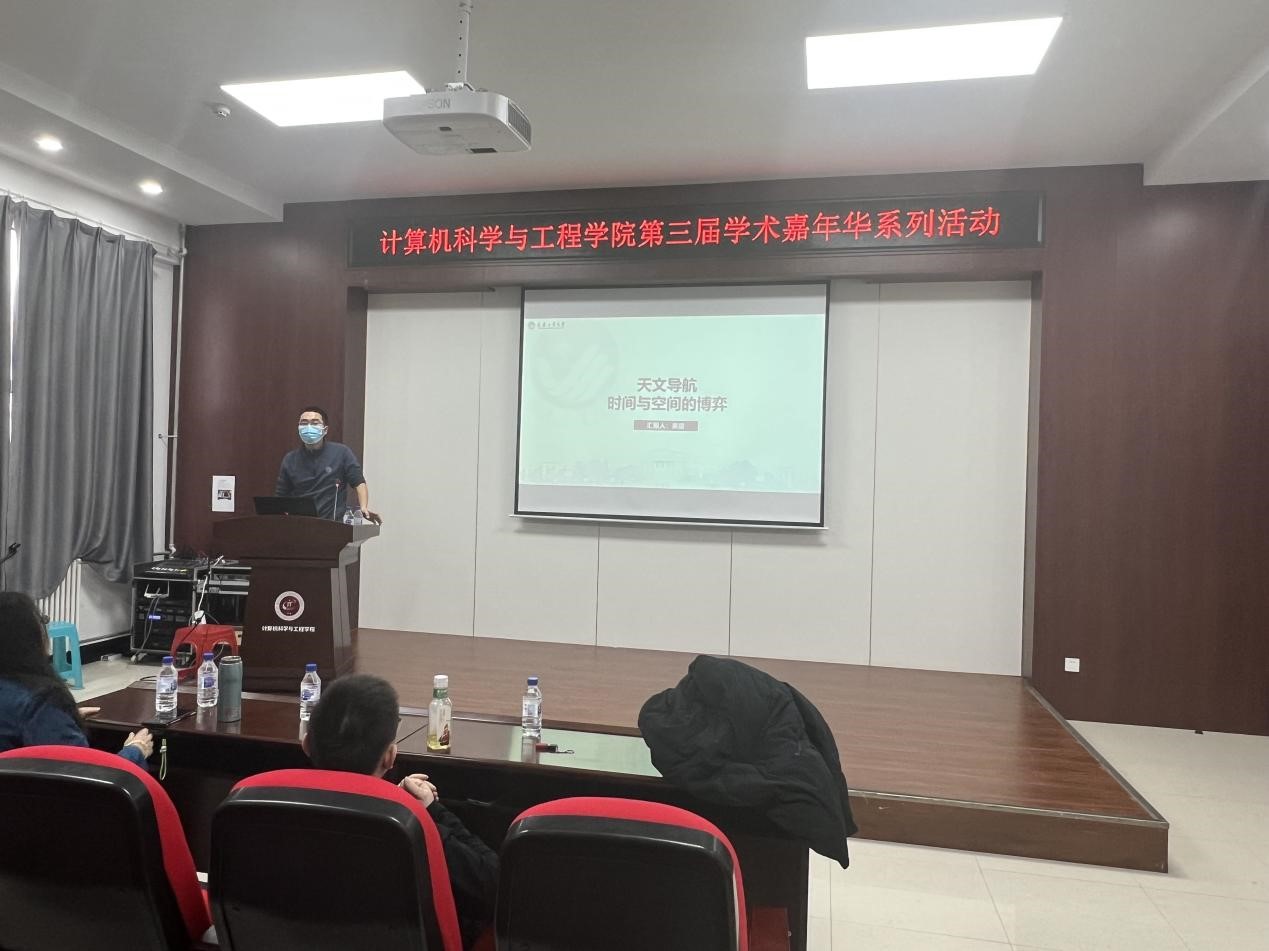 接着,吴量博士作了题为《天文导航——时间与空间的博弈》的报告。他以星敏感器及其相关技术为载体,结合时间和空间在天文导航中的重要意义,追溯了天文导航技术的发展历史,展望了恒星际深空导航技术的前景,探讨了星敏感器在空间态势感知领域的应用,并与师生针对该领域的研究进行了深刻的互动交流。