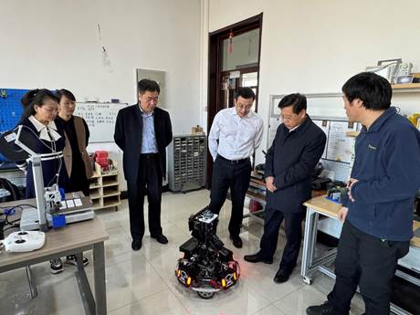 在1024创新实验室,师生团队向陈书记展示了为参加第二十四届全国大学生机器人大赛RoboMaster2025机甲大师高校联盟赛而自主研发的“哨兵”“步兵”“英雄”三款智能战车,重点介绍了其采用3D打印技术制造的核心零部件及创新设计理念。