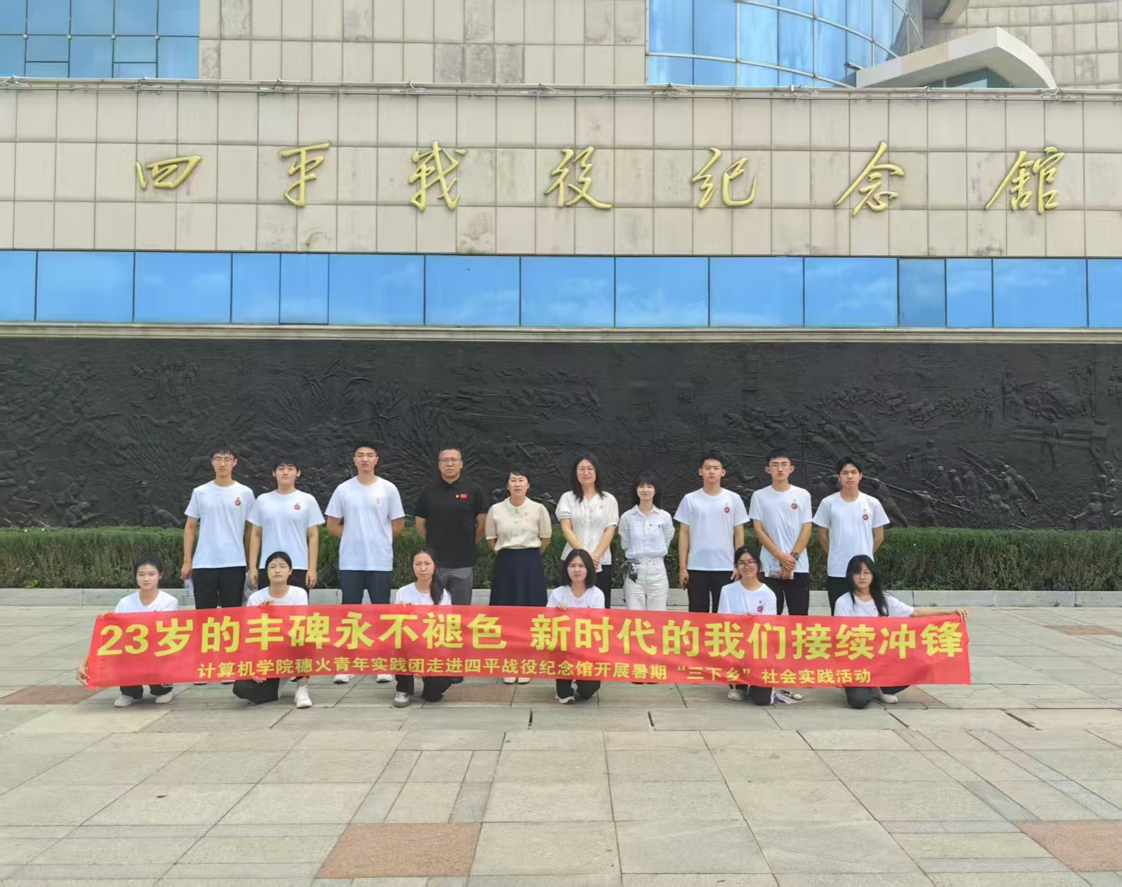怀着崇高敬意,实践团踏入精神圣地四平战役纪念馆。厚重文物与鲜活史料再现了党领导人民军队为民族解放浴血奋战的壮烈史诗,深刻诠释了伟大建党精神。四平战役是东北战场关键之战,更是党推翻反动统治、建立新中国斗争的重要组成部分。东北民主联军以“为有牺牲多壮志”的气概“四战四平”,其“前仆后继、踏尸猛冲”的钢铁意志印证了听党指挥、信念如磐、视死如归的根本特质。团队领悟到,战役胜利不仅是军事胜利,更是人民胜利、党的群众路线胜利——59万支前群众舍生忘死筑起后勤保障线,雄辩印证了“战争伟力最深厚根源存在于民众之中”。纪念馆前“23岁的丰碑永不褪色,新时代的我们接续冲锋”的条幅,连接起烽火岁月与和平年代。作为肩负建设网络强国重任的计科学子,大家深感此行是涤荡心灵的历史回望,更是淬炼党性的生动课堂。