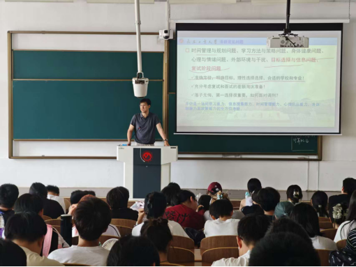 会上,刘冰副院长围绕研究生考试形势与政策展开指导。他详细分析了当前考研的整体趋势,解读了学术型硕士与专业型硕士的培养定位与区别,并结合我校实际情况,介绍了学校的相关考研政策和备考要点,鼓励同学们根据自身兴趣与发展方向,科学选择报考路径,积极做好学习规划。