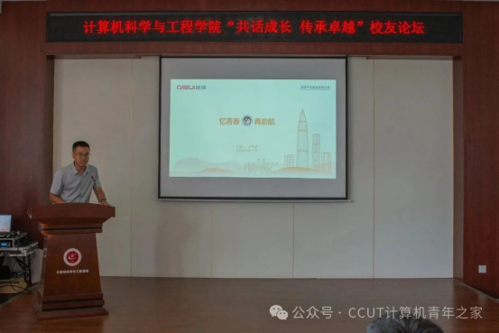 本次报告会特邀两位扎根吉林的优秀校友作主题报告。2010级电子信息工程专业校友卢利斌,现任迪瑞医疗电气技术部总经理,作为留吉发展优秀代表,以“从校园到职场:在吉林这片热土上成长”为主题,分享了从实验室萌新到技术管理者的蜕变历程。他详细介绍了带领团队突破国外技术垄断,打造公司首条全自主知识产权实验室流水线的奋斗经历,用亲身经历证明在吉林同样能够成就事业、实现梦想。