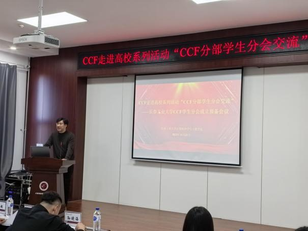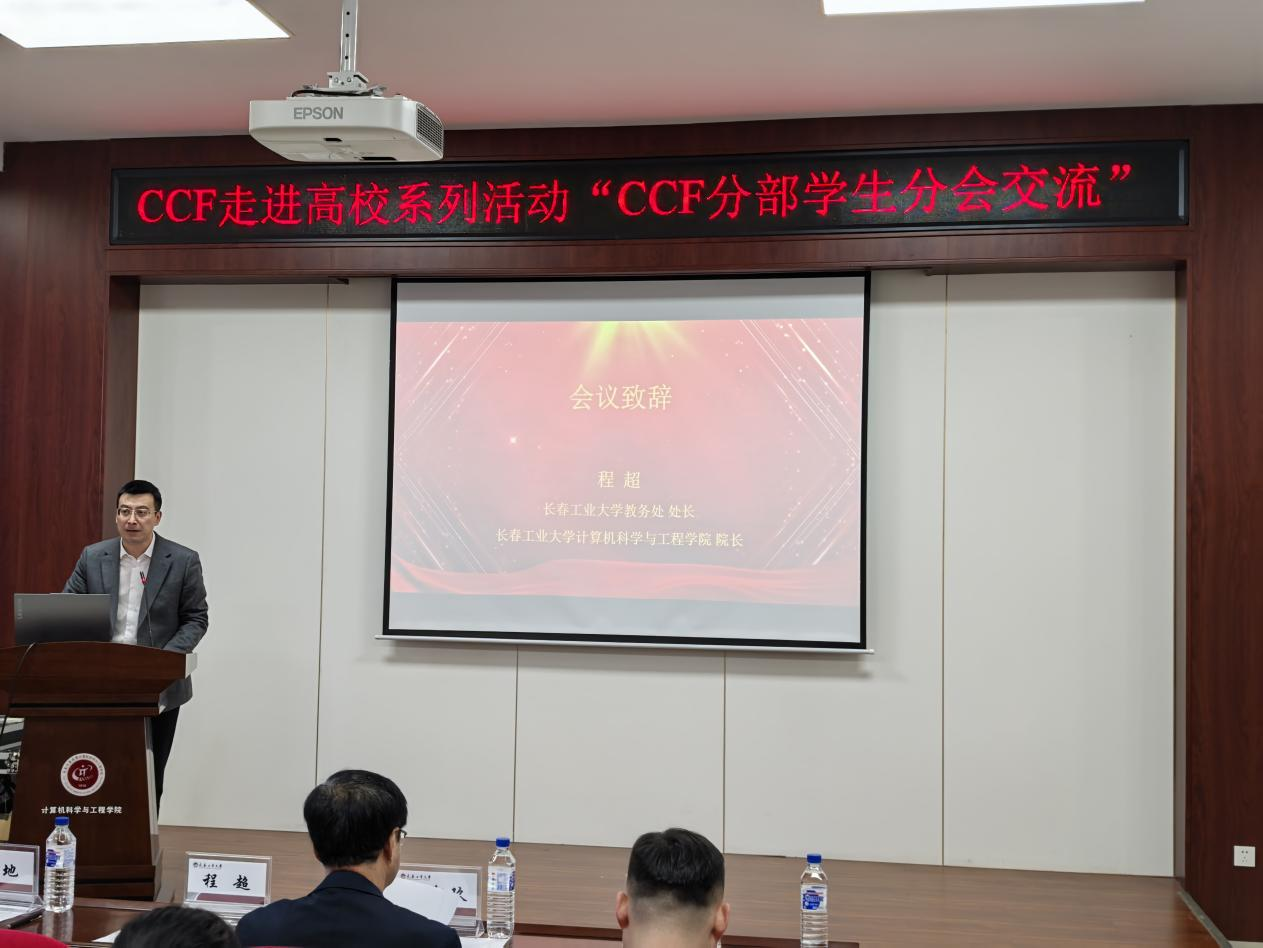 院长程超发表致辞。他代表学校对CCF长春分部及与会师生表示热烈欢迎,并指出CCF学生分会的成立将为学生提供更广阔的学习平台和更多元的成长路径,助力学校计算机学科发展与人才培养体系建设。