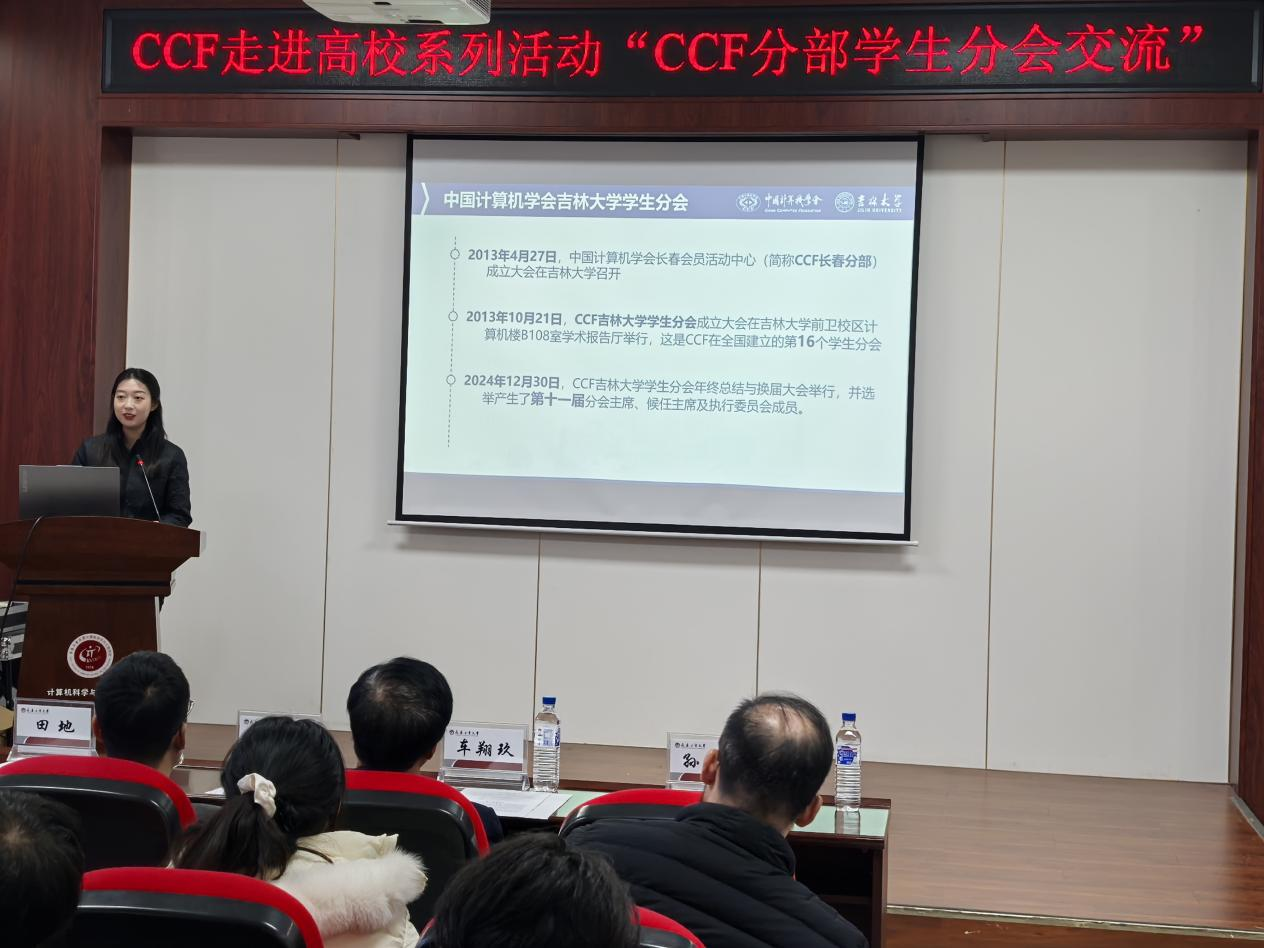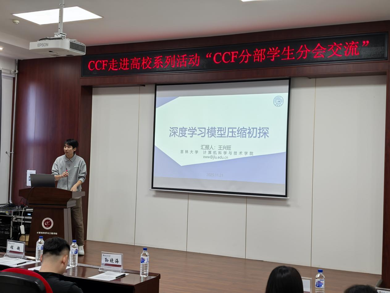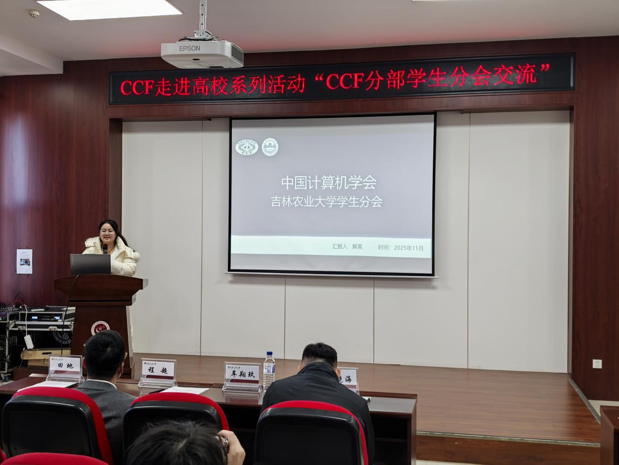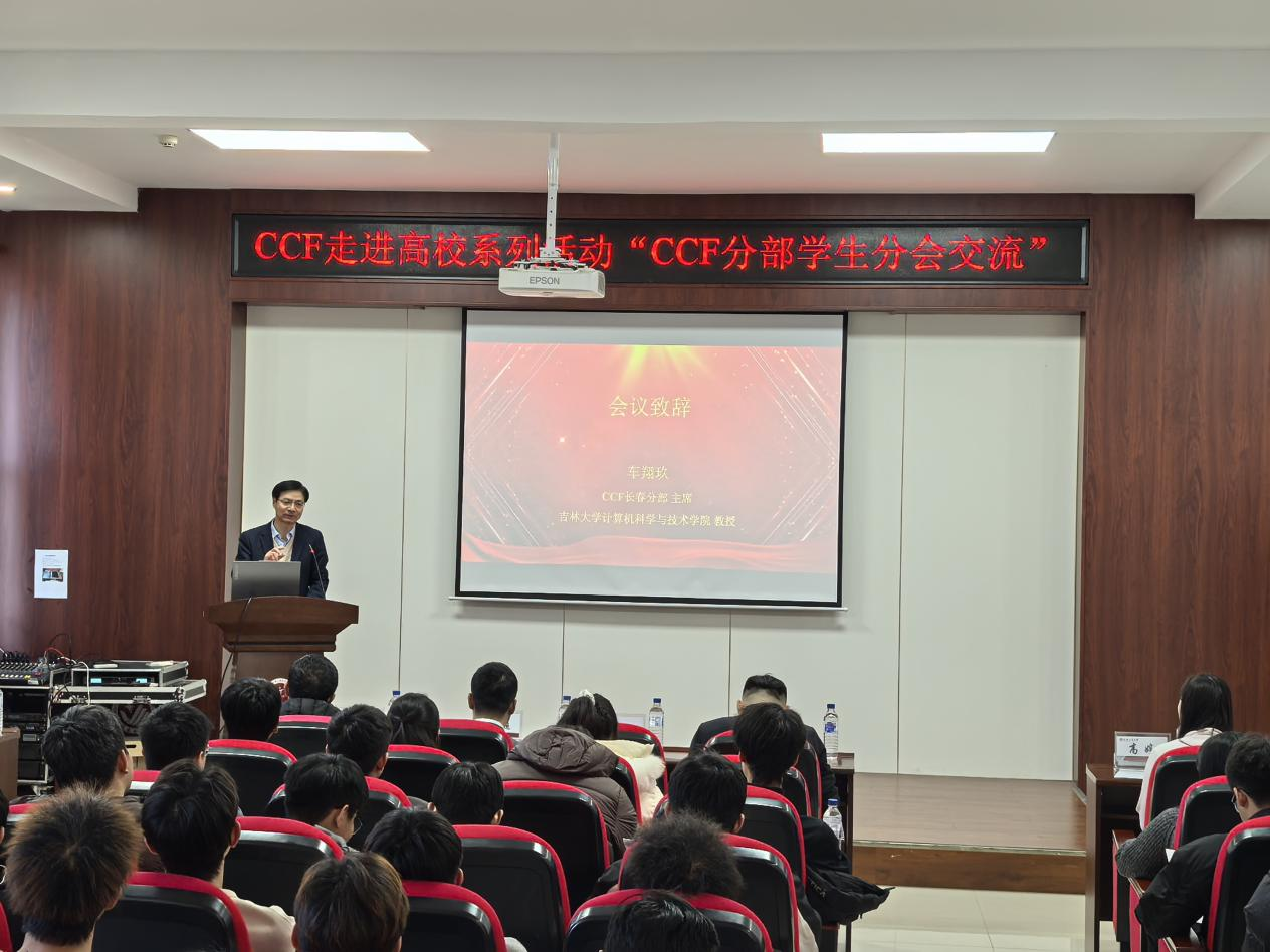 在专题汇报环节,来自吉林大学、吉林农业大学的专家学者和CCF学生分会代表,围绕计算机学科前沿研究与学生组织建设,分别就其代表性成果与实践经验进行了分享。