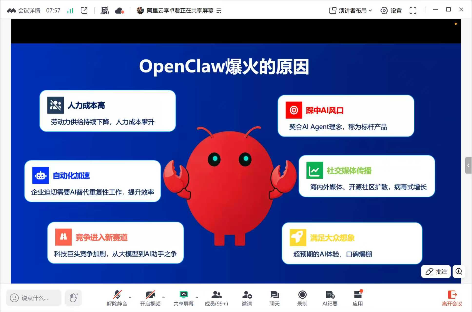 学生分会联合阿里云举办OpenClaw高校“龙虾”局分享活动,本次活动由阿里云提供专业技术主讲与内容支持,系统讲解OpenClaw基础原理、云端安全部署流程等内容。