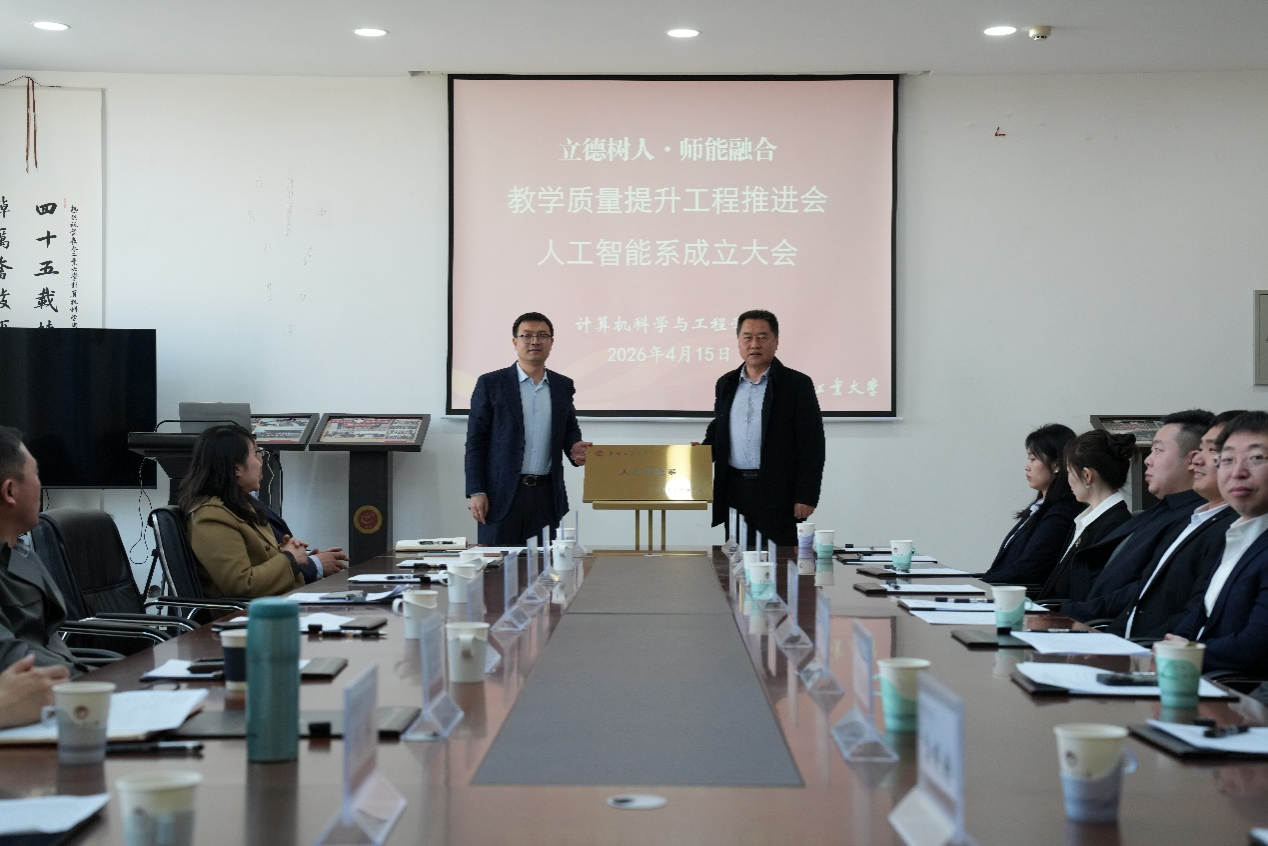 党委书记周文明宣读学校关于成立人工智能系的批复及干部拟任人选,校长助理李玉峰与周文明共同为人工智能系揭牌,标志着成人视频