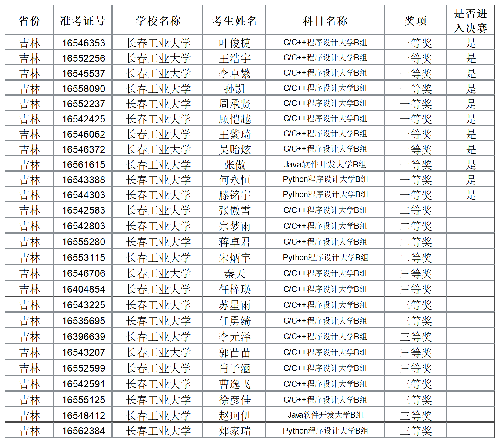学生凭借扎实的专业功底和出色的创新能力,最终斩获c/c++程序设计组一等奖8项、c/c++程序设计组二等奖3项、c/c++程序设计组三等奖9项、Java软件开发组一等奖1项、Java软件开发组三等奖1项、Python程序设计组一等奖2项、Python程序设计组二等奖1项、Python程序设计组三等奖1项等优异成绩,其中总共11名选手成功晋级全国总决赛。